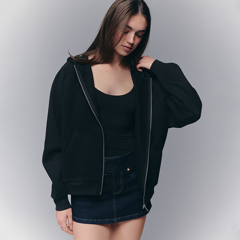 Dukserica na otkopčavanje sa kapuljačom crno 643JL-99X