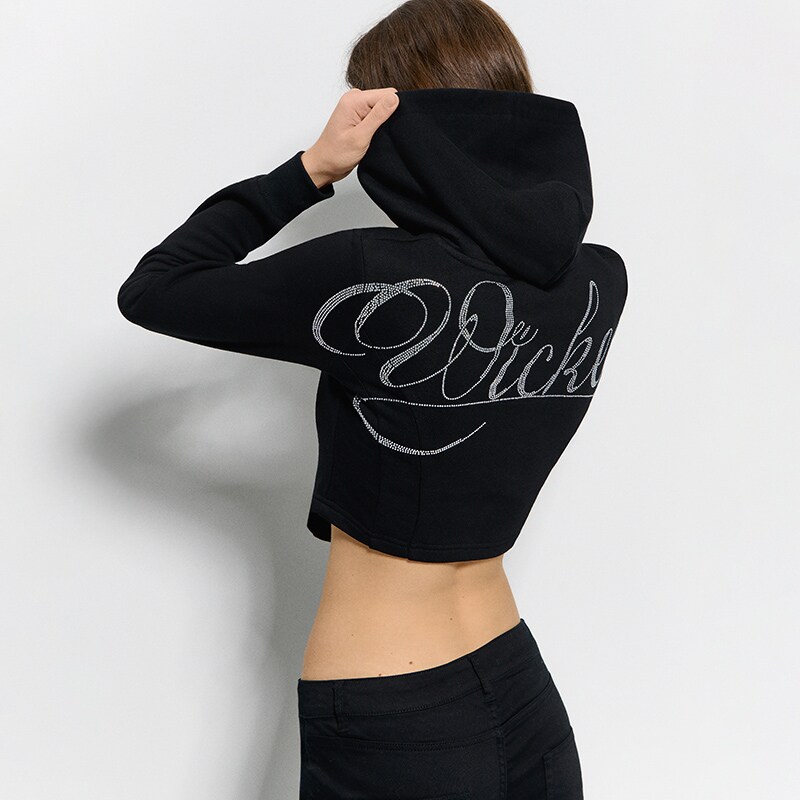 Dukserica sa kapuljačom i printom Wicked crno 100HN-99X